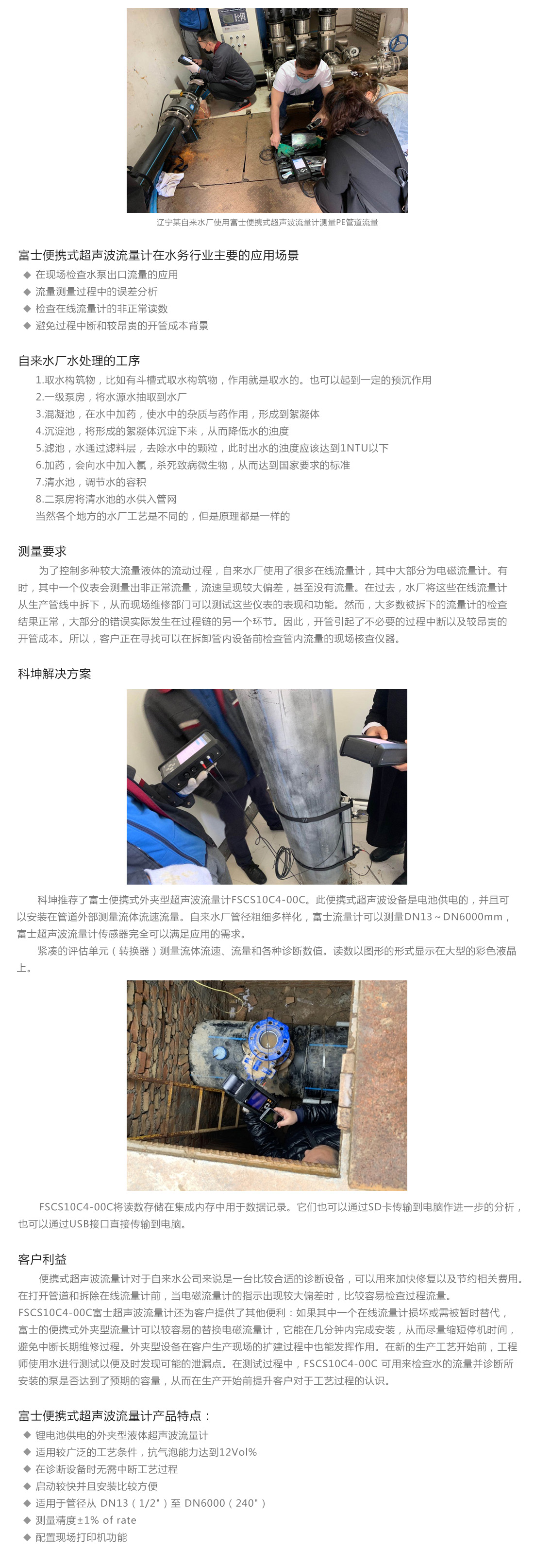 富士便攜式超聲波流量計 - 自來水泵房流量應用案例