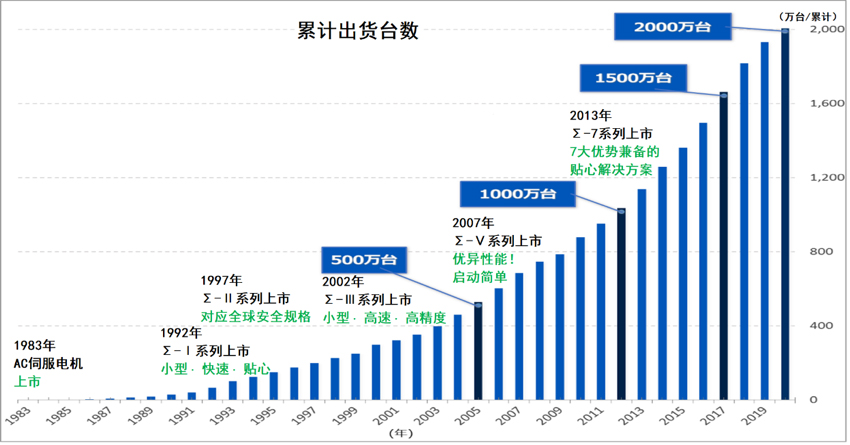 據本公司日本總部消息,截至2020年8月,安川AC伺服電機累計出貨。已突破2000萬臺。